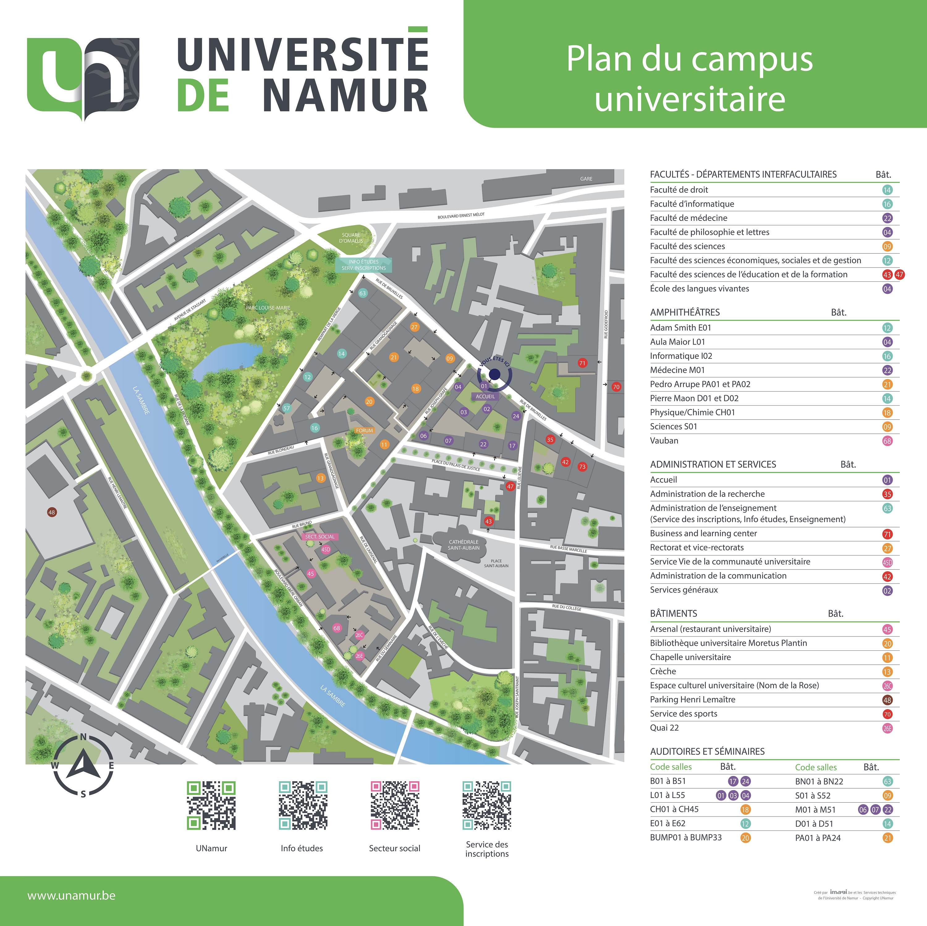 Le parking visiteur de l'UNamur est situé rue Henri Lemaître (#48 sur le plan du campus) et est accessible moyennent une vignette d'accès (à demander à votre hôte).